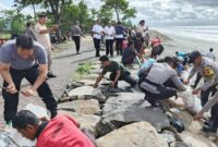 Satbrimob Polda Bali Berjibaku Bersih-bersih Pantai Padang Galak