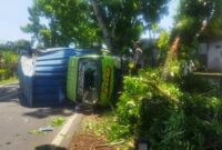 Truk Boks Hantam Pohon di Jalan Denpasar-Gilimanuk gegara Sopir Mengantuk