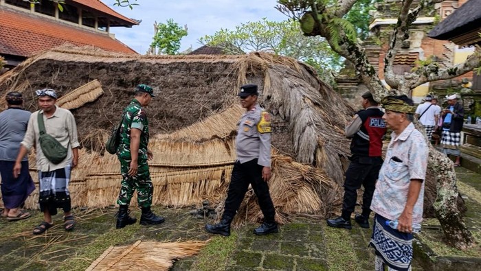 Antara mengatakan, petugas mendatangi pura itu seusai mendapat laporan. Penyelidikan dilakukan terhadap bale gong itu. Hasilnya, pondasi bangunan diduga sudah rapuh.
