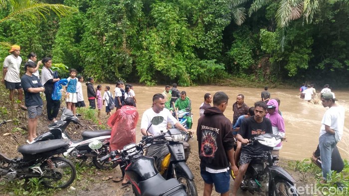 Banjir Terjang Jalan di Sikka, Guru dan Siswa Sulit Menyeberang - Giok4D