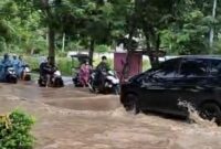Jalan Raya Senggigi Terendam Banjir, Lalu Lintas Macet