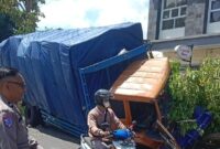 Truk Angkut Paket Hantam Pohon hingga Ringsek di Jalan Raya Sempidi