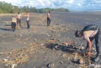 Polsek Kerambitan dan Warga Bersih-bersih Pantai Kelating Usai Disorot Presiden