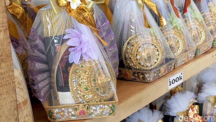 “Pesanan itu biasanya H-2 bulan sudah masuk. Isinya bervariasi ya, ada dari dupa, ada juga dari cookies kayak gitu, sama snack-snack ya tergantung permintaan juga jadi kami by request,” ujar pemilik Bramasta Bali, Via, ditemui di tokonya, Minggu (8/3/2026).