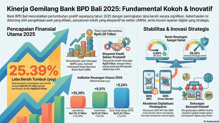 BPD Bali menunjukkan kinerja gemilang sepanjang tahun 2025. Pertumbuhan positif 25,39 persen (yoy) dibukukan oleh perseroan di tengah dinamika ekonomi global.