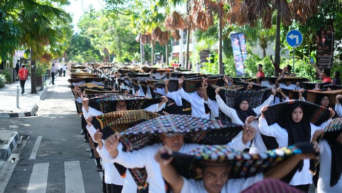Sebanyak 1.000 kain songke Manggarai dibentangkan dalam karnaval budaya Komodo Waterfront Festival 2025 di Labuan Bajo, Manggarai Barat, Nusa Tenggara Timur (NTT), Sabtu (15/11/2025) pagi. Satu kain songke dibentangkan satu orang yang melibatkan siswa, mahasiswa, dan masyarakat umum.