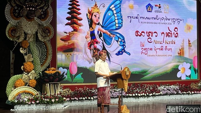 “Kadisperindag semua produk lokal Bali semuanya sekarang standarkan dia harus menggunakan aksara Bali kalau tidak menggunakan aksara Bali tidak usah dipasarkan dia tutup aja, gitu aja,” kata Koster saat pidato di Pembukaan Bulan Bahasa Bali di Art Center, Denpasar, Minggu (1/2/2026).
