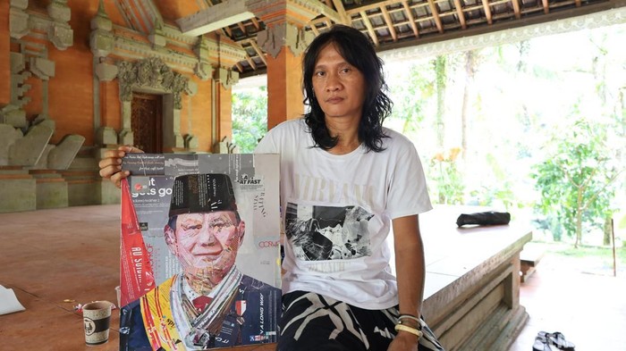 Sabtu (31/1/2026) siang, bertemu Nyoman Antara di pameran lukisan bertajuk “Humanity” di kawasan Pura Goa Gajah, Kabupaten Gianyar, Bali. Dia datang membawa lukisan kolase wajah Presiden Prabowo Subianto yang baru dibuatnya sepekan lalu.
