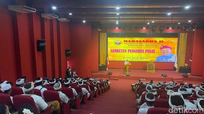 Pasemetonan Sira Arya Gajah Para Bretara Sira Arya Getas menggelar Mahasabha II di Gedung Audio Visual Wiyata Graha, Besakih, Sabtu (21/2/2026). Kegiatan tersebut dilaksanakan untuk menyamakan persepsi terkait pemilihan kepengurusan lima tahun ke depan.