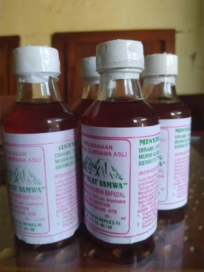 Sedangkan manfaat kesehatan dari dalam, yaitu untuk mengatasi sesak napas, menyegarkan tubuh, meningkatkan vitalitas pria, dan perut kembung. Minyak Sumbawa dapat digunakan dengan cara dioles maupun diminum langsung karena terbuat dari bahan alami yang diracik oleh Sandro.