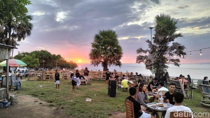 Akhir pekan di Tebing Pantai Lasiana bisa menjadi pilihan untuk menikmati kuliner lokal sambil menyaksikan matahari terbenam. Di tempat ini, pengunjung tak hanya disuguhi panorama laut, tapi juga pelayanan unik dari anak-anak yang membantu orang tuanya berjualan.