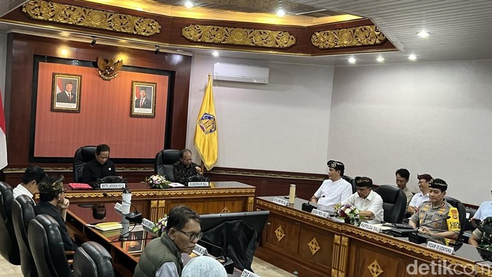 Menteri Lingkungan Hidup Hanif Faisol Nurofiq menggelar rapat koordinasi bersama Gubernur Bali Wayan Koster, Bupati Badung, Wali Kota Denpasar, dan Forkopimda Bali di Kantor Gubernur Bali, Kamis (5/3/2026).