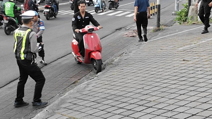 Aksi nekat dilakukan seorang pengendara Vespa matik yang memacu kendaraannya demi menghindari pemeriksaan petugas di Traffic Light (TL) Dalung, Desa Dalung, Kuta Utara, Badung, Jumat (6/2/2026) petang. Meski sudah diminta menepi untuk diberikan surat teguran karena tidak memakai helm, pria tersebut justru tancap gas hingga nyaris menabrak polisi yang berjaga.