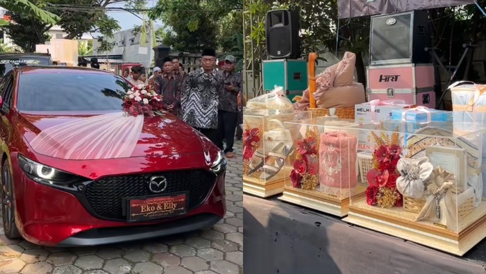 Momen tersebut diunggah akun TikTok @sinartelur dan langsung menyedot perhatian warganet. Dalam video itu, tampak sebuah mobil sedan Mazda berwarna merah menjadi bagian dari seserahan yang diarak menuju kediaman pengantin wanita.