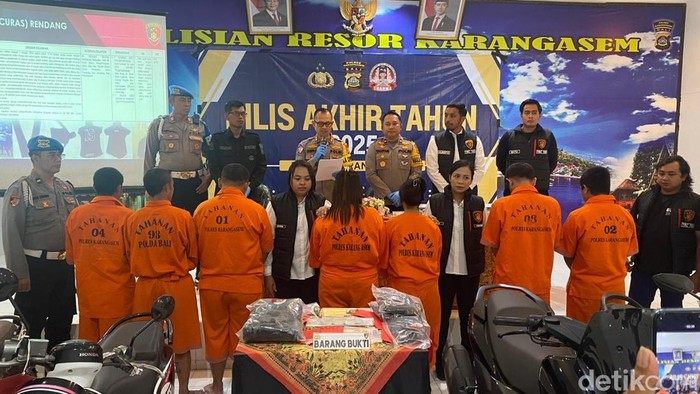Satuan Reserse Kriminal (Satreskrim) Polres Karangasem mengungkap lima kasus pencurian di beberapa lokasi menjelang pergantian tahun. Sebanyak tujuh pelaku ditangkap dan sudah ditetapkan tersangka. Dua di antaranya adalah perempuan.