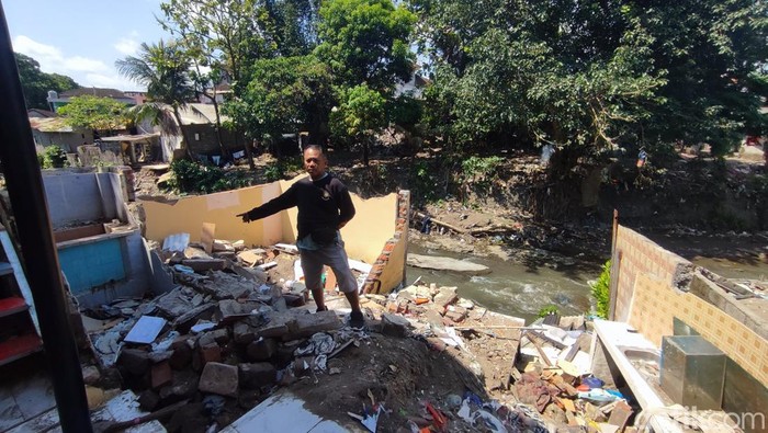 “Nggak ada yang tersisa, ya cuman sisa pintu depan. Motor masih selamat karena parkir di depan rumah, cuman ya tenggelam juga karena air sudah tinggi. Pakaian? Ya cuman pas yang dipakai tidur itu aja,” kata Sutris, sapaan Sutrisno, sembari menatap rumah yang ia tempati selama 35 tahun sejak menikah dengan Ida, istrinya.
