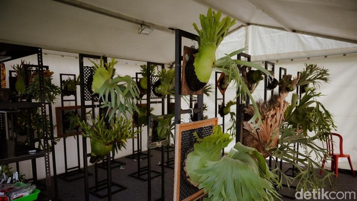 Aneka tanaman simbar atau Platycerium dengan tampilan eksotis menyerupai ‘tanduk rusa’ dipamerkan dalam Mangupura Platycerium Exhibition di Badung, Sabtu (22/11/2025). Pameran yang berlangsung di lapangan Puspem Badung itu menampilkan berbagai koleksi, termasuk yang dibanderol hingga Rp 5 juta.