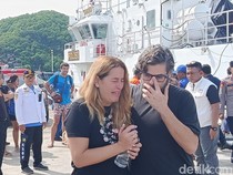 Mar Martinez Ortuno menangis di bahu dua saudara kandungnya di Pelabuhan Marina Labuan Bajo, Manggarai Barat, Nusa Tenggara Timur (NTT), Minggu (28/12/2025) pagi. Mar adalah istri pelatih Tim B Wanita Los Che klub LaLiga Valencia CF, Martin Carreras Fernando.