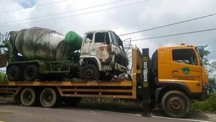Sebuah truk mixer (molen) tak bertuan yang terparkir selama enam tahun di Jalan Trans Flores Labuan Bajo-Ruteng, tepatnya di Cabang Langgo, Desa Wisata Wae Lolos, Kecamatan Sano Nggoang, Manggarai Barat, Nusa Tenggara Timur (NTT), akhirnya dievakuasi, Kamis (5/2/2026). Evakuasi menggunakan alat berat milik Dinas Pekerjaan Umum dan Penataan Ruang (PUPR) Manggarai Barat.