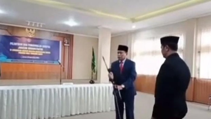 Beredar video Kepala Kantor Wilayah (Kakanwil) Kementerian Agama (Kemenag) NTB Zamroni Aziz melempar tiang mikrofon seusai acara pelantikan Kepala Kemenag Dompu, Najamuddin. Video berdurasi 28 info itu viral di media sosial, Sabtu (20/9/2025).