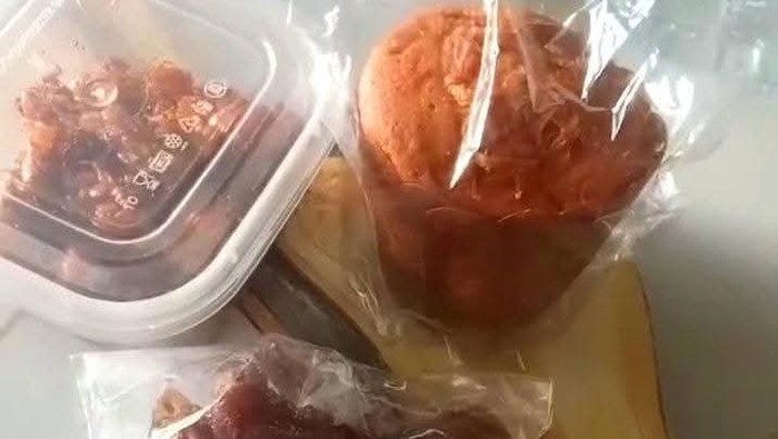 Dalam video itu, Agus merekam menu yang diterima anaknya di sekolah. Ia menunjukkan paket makanan yang berisi tiga butir kurma, satu potong kue basah, dan tempe orek.